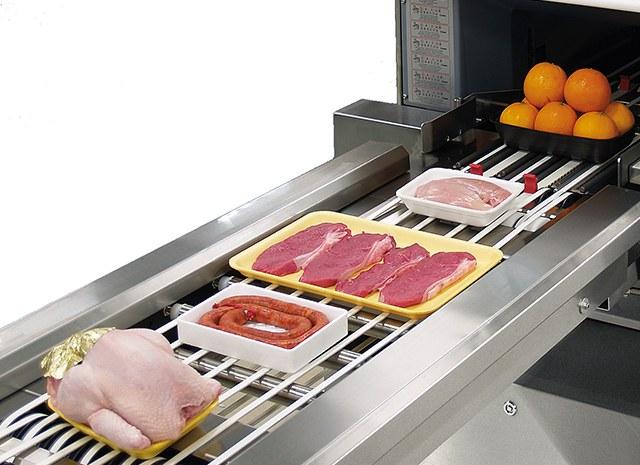 Автоматическая машина для упаковки продуктов в лотках в стрейч-плёнку. Высокая производительность. Специально разработана для супермаркетов и упаковочных центров (мясо, птица, рыба, овощи и фрукты).